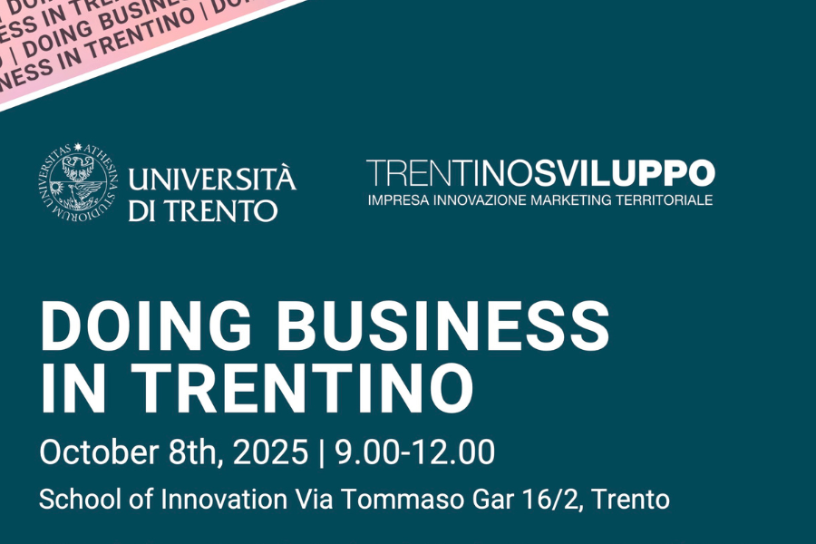 Giunto alla sua 3ª edizione, il business talk "Doing Business in Trentino" si terrà mercoledì 8 ottobre, dalle 9:00 alle 12:00, presso la School of Innovation (SOI) di Trento.