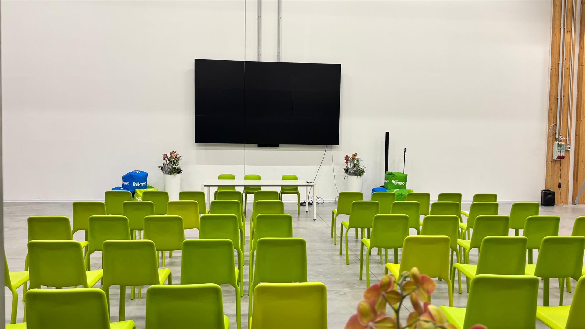 L’ambiente viene consegnato libero da arredi, in modo che l’organizzatore possa allestirlo secondo le proprie esigenze. È dotato di video wall 3x3 da 165’’, impianto di amplificazione integrato, rete Wi-Fi Trentino Sviluppo, e possibilità di connessione via cavo su richiesta.