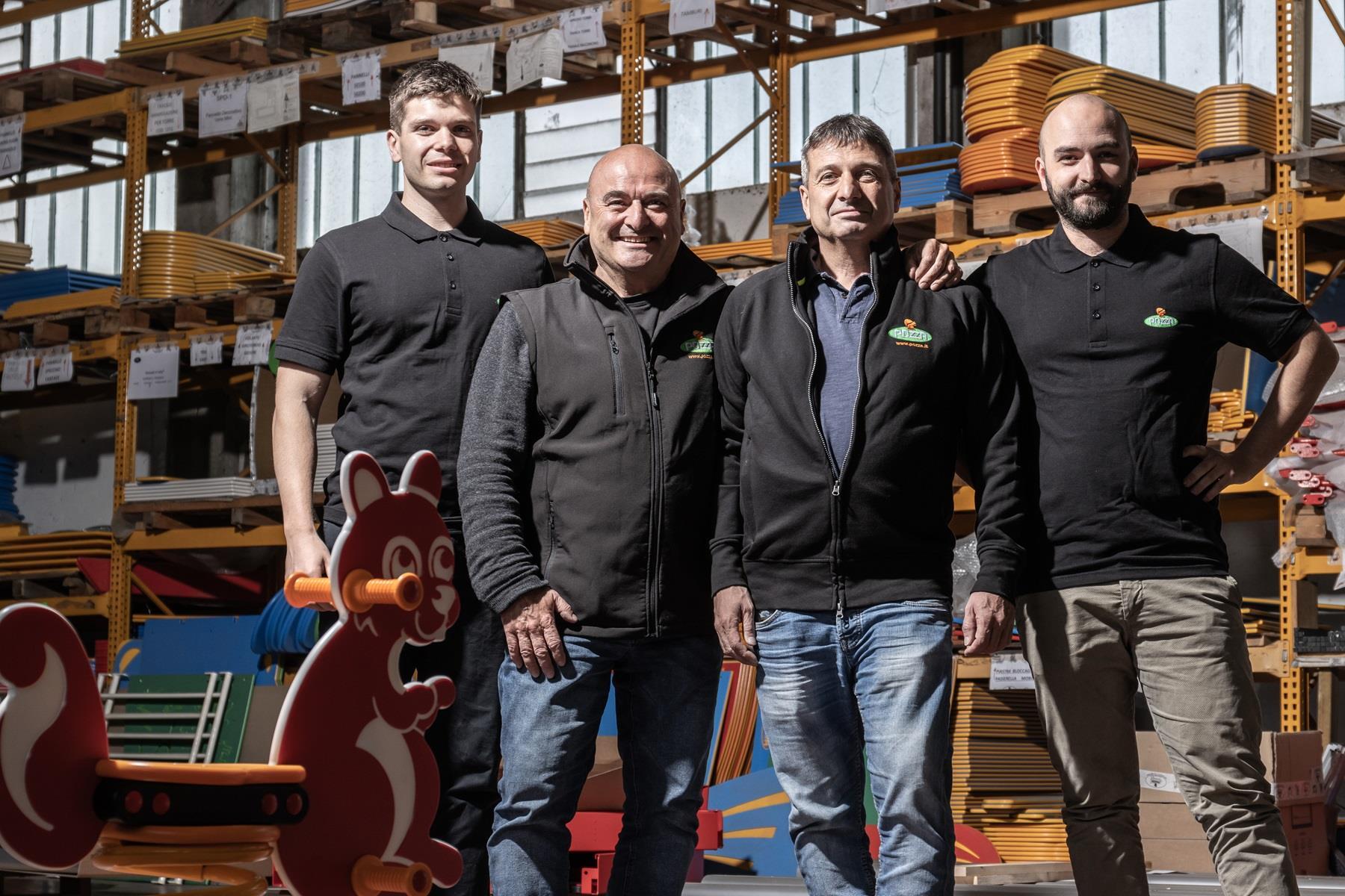 «L’idea di passare dalla lavorazione del legno alla progettazione di parchi per bambini – spiega Dario Otello Pozza, titolare assieme al fratello Franco – venne a nostro nonno, che si chiamava Dario come me». Era il secondo dopoguerra, «gli orfani, purtroppo, erano tanti e i preti avevano bisogno di attrezzare gli oratori per prendersene cura. Cominciarono quindi a commissionare le prime altalene e i primi scivoli. Analogo percorso seguirono i comuni e, così, l’Italia divenne uno dei primi Paesi al mondo a dotarsi di strutture ricreative all’aperto per l’infanzia». I Pozza parteciparono al processo da vicino, brevettando già nel 1966 il primo gioco a molla, al quale seguirono numerose innovazioni registrate.