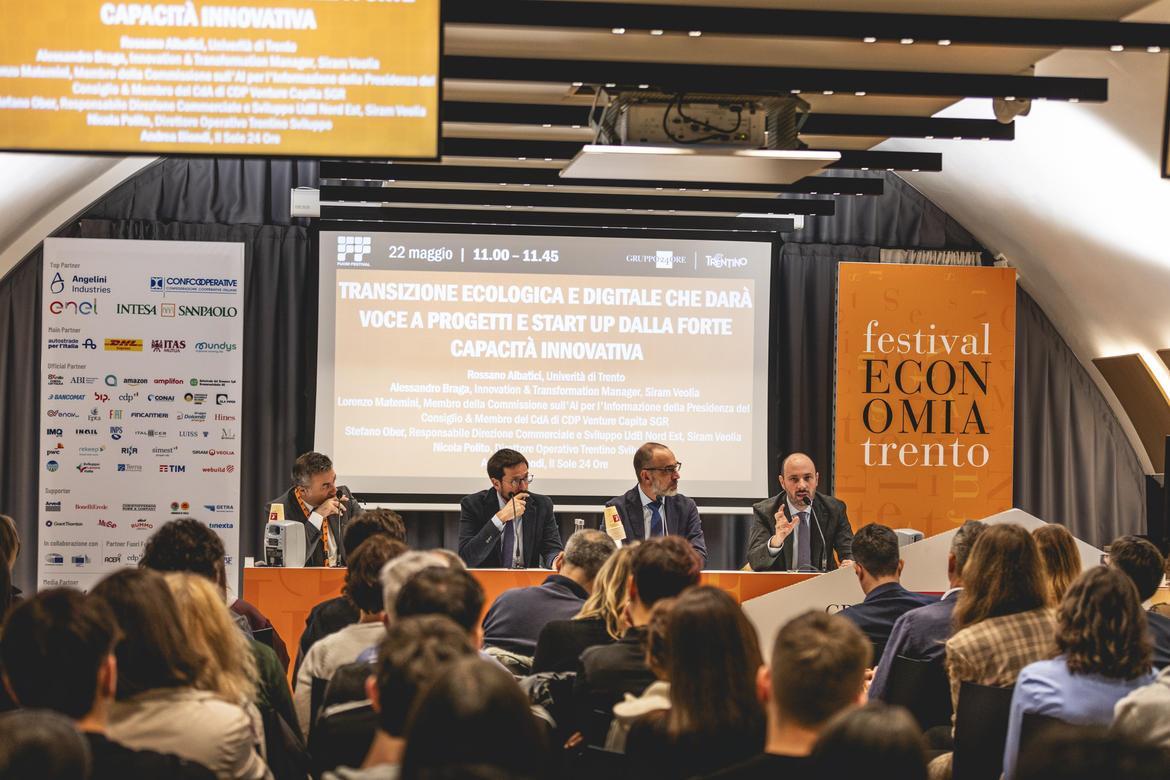 All’incontro, che ha visto anche la partecipazione di due classi dell’Istituto Gandhi di Merano, è intervenuto inoltre Alessandro Braga, Innovation & Transformation Manager di Siram Veolia, che ha detto: «In questi anni stiamo assistendo allo sviluppo di un ecosistema dell’innovazione vibrante e in forte crescita, una grande risorsa anche per le sfide ambientali del nostro Paese. Un’ecologia che concilia economia, salute e ambiente è la ragion d’essere del gruppo Siram Veolia, in un lavoro quotidiano che ci vede a fianco di università, centri di ricerca e poli dell’innovazione. Per noi supportare startup e PMI, obiettivo del progetto che oggi lanciamo, significa porci come piattaforma di test delle loro tecnologie, per coglierne i punti di forza e la scalabilità industriale assistendole nelle più importanti e delicate fasi di sviluppo». Lorenzo Maternini, membro della Commissione sull'intelligenza artificiale per l'Informazione della Presidenza del Consiglio e membro del CdA di CDP Venture Capital SGR ha poi invitato a stimolare la creatività imprenditoriale nei ragazzi e nelle ragazze fin dalle scuole superiori attraverso programmi e poli d’innovazione dedicati. Rossano Albatici, professore Dipartimento di Ingegneria Civile Ambientale e Meccanica dell’Università di Trento, ha sottolineato infine l’importanza della ricerca libera e spontanea e degli strumenti didattici innovativi per favorire l’apprendimento in gruppo, come il “learning by doing”, quindi l’imparare facendo e il metodo didattico della “flipped classroom” o “classe capovolta” che va oltre la tradizionale lezione frontale, proponendo a studenti e studentesse attività collaborative e interattive.