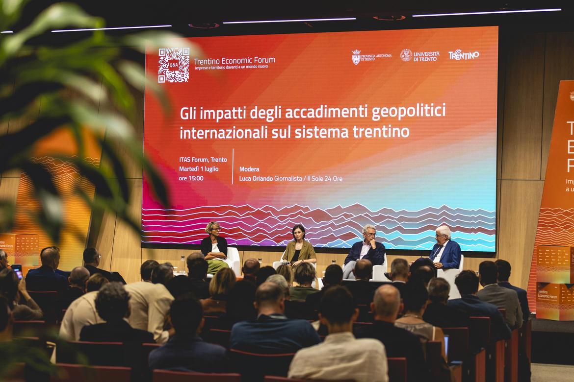 Il pomeriggio, moderato dal giornalista de Il Sole 24 Ore Luca Orlando, è proseguito con una riflessione sugli impatti degli accadimenti geopolitici internazionali sul sistema trentino. Tra gli ospiti, il direttore de Il Sole 24 Ore Fabio Tamburini, il direttore di Limes Lucio Caracciolo, il direttore e vicepresidente della Fondazione Edison Marco Fortis, il giornalista del Corriere della Sera Federico Fubini, Francesco Giavazzo, professore emerito di Economia politica dell’Università Bocconi, la docente della Scuola di Studi Internazionali dell’Università di Trento Sondra Faccio e la docente del Dipartimento di Economia e Management dell’Università di Trento Chiara Tomasi.