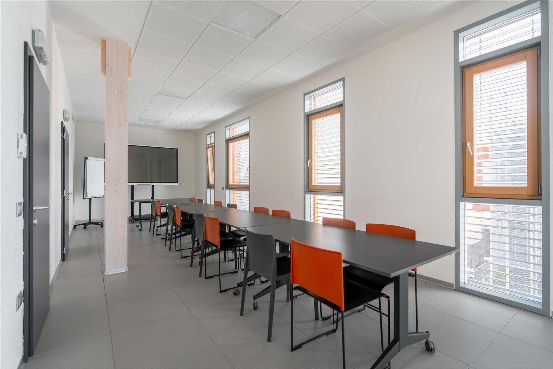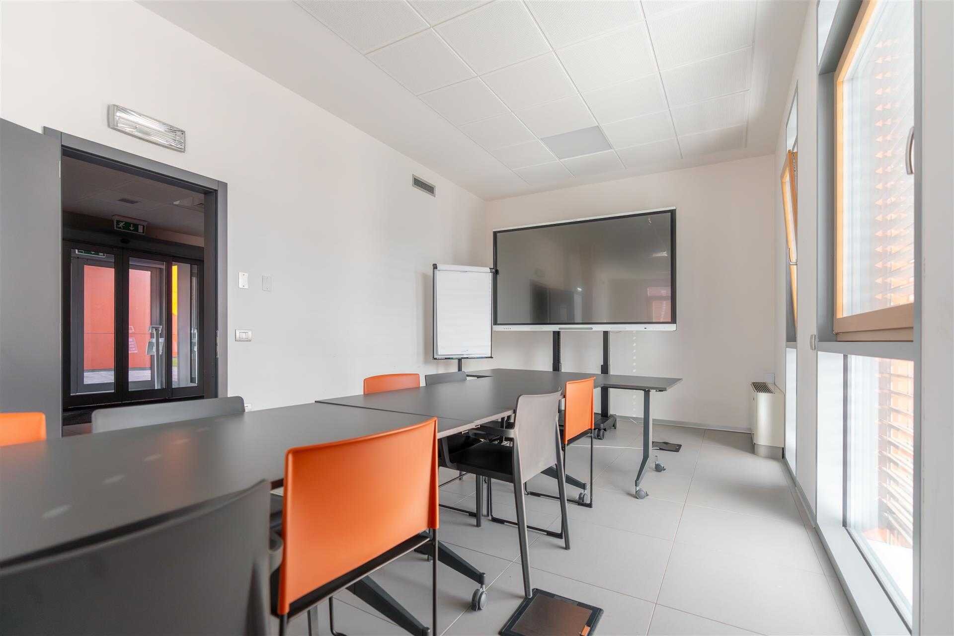 La sala Meccatronica 1 si presta perfettamente per le attività di formazione e per videoconferenze, grazie alla sua disposizione e flessibilità. Ad uso sia di Trentino Sviluppo, per le aziende insediate e per ospiti esterni