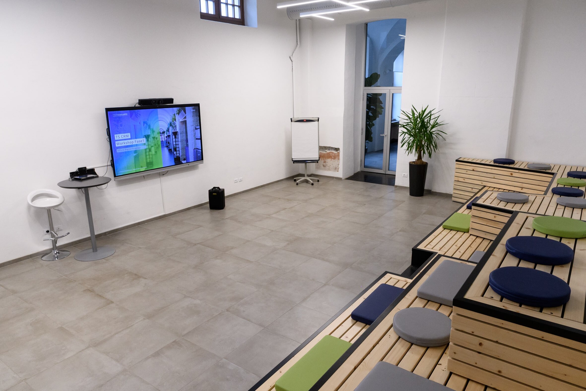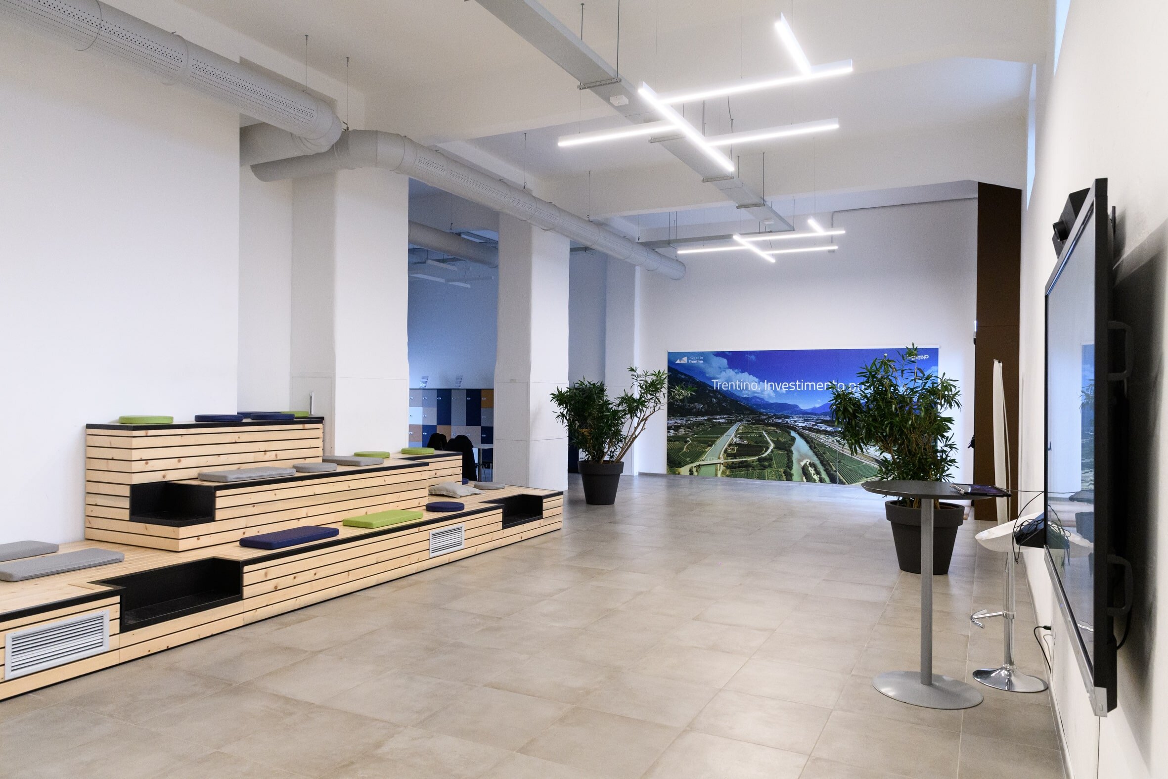È una sala moderna e luminosa, ideale per eventi aziendali, incontri formativi, presentazioni e workshop. Con i suoi 167 metri quadrati e una capienza fino a 30 persone, offre un ambiente curato e facilmente configurabile. È dotato di video wall 2x2 da 110’’, sistema di condivisione wireless ClickShare con connessione Type-C, soundbar Bluetooth Samsung e rete wi-fi Trentino Sviluppo. Lo spazio viene utilizzato sia da Trentino Sviluppo che dalle aziende insediate e da ospiti esterni che necessitano di un ambiente flessibile e tecnologicamente attrezzato.